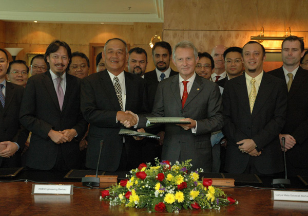 In November 2007, CMS finalised the sale of the site of CMS Steel Sdn Bhd’s rolling mill to Bursa Malaysia-listed KKB Engineering Bhd (KKB) for a disposal price valued at RM32.0 million. The sale of the 17.6–acre site fronting the Sarawak River at Sejingkat, Kuching was to be satisfied by KKB through the issuance of 16 million new ordinary shares, giving CMS a strategic 20% stake in KKB. KKB Group Chairman and Managing Director Dato Kho Kak Beng, whose initials form the name of the company he founded, said that the signing marked the beginning in KKB’s ambition to expand further within Sarawak and beyond, targeting its strength of structural steel fabrication and related engineering works, and to undertake steel works for more CMS and third-party projects in the future. KKB is also involved in the manufacturing of LPG cylinders and cylindrical steel drums.