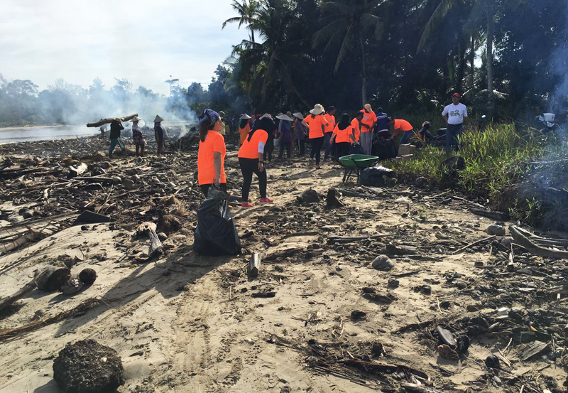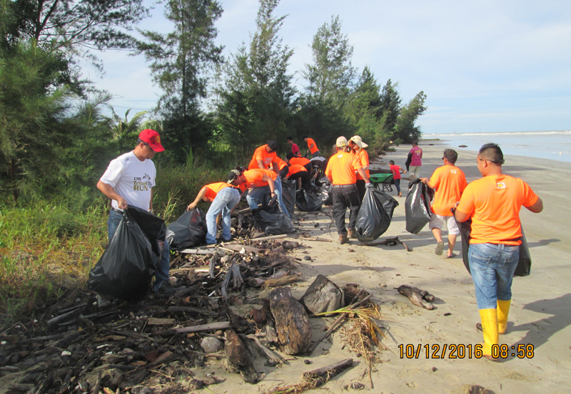 10 December 2016 – Fourteen employees from Samalaju Properties and CMS Premix together with the kampung folks gathered at the beach of Kampung Kuala Nyalau, Bintulu to collect more than 20 bags of rubbish and debris.